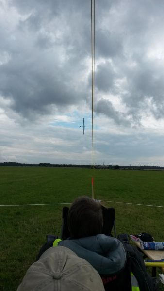 Helferaufwand: Wenn man von einer Sechsergruppe beim Streckenfliegen ausgeht, dann braucht man zu diesem Zeitpunkt mindesten 6 Mann an der A-Linie, 6 Mann an der B-Linie, 1-2 Mann im Rechenzentrum und eine Person für die Wettbewerbsleitung. Aufs Klo darf niemand 😉
