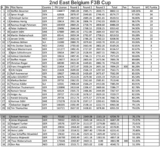 Steffen Besemer lost the least amount of points and won the second East Belgium F3B Cup, followed by Soren Krogh and Christoph Sarter. Differentiation between the pilots was quite high and the percent results dropped quickly. A huge thank you goes out to the team around Mark Mölter, the Countryflyers and Feuervogel Büllingen for again organizing this wonderful event, directing the competition in a consistent and relaxed way and creating an amazing timekeeping tool that I look forward to see again next year and maybe even at other events.