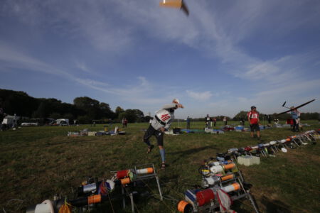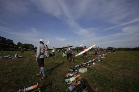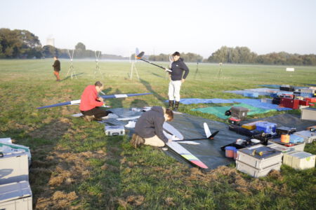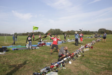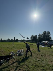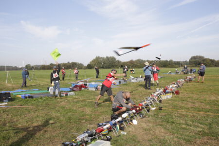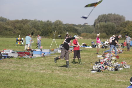 But they were not wrong: The wind was just a bit higher up. This resulted in most teams having too small diameter lines on their winches and the line breaks started immediately with the first launch. The first group needed two new start attempts because of lots of line crossings. After some hints from the competition director, most realized to better use a thicker line next time and finally we were able to start the competition.