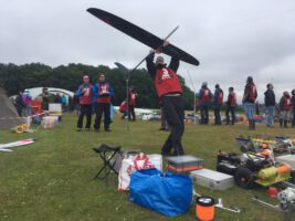 Der F3B-Flugbetrieb in Anthisnes war an diesem Wochenende von Beginn an „nicht ohne“: Veranstalter Denis gab die Aufstellung der Winden und Umlenkrollen entsprechend
