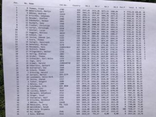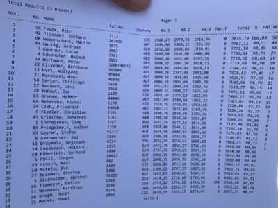 After lunch the final speed was flow in opposite order of the current ranking. No big changes to the previous speed, but especially for the leading group we saw some too early turns and several flights with unusual mistakes like late turns or not flying straight. Markus Becker was able to keep his first place with a 14,23s, while Thomas Gruber won this speed with an amazing 13,46s flight.