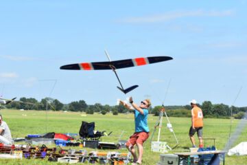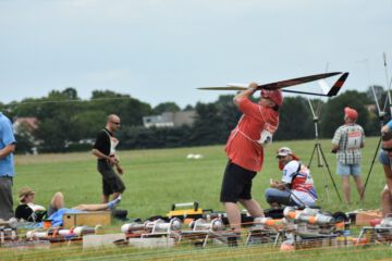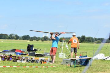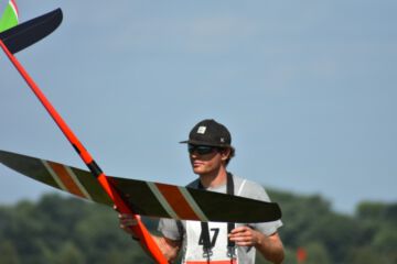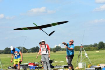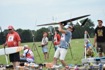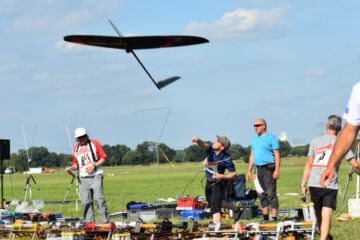 Distance round three showed the already strong thermals, today with a bit less wind and more predictability. Still, they were gone quickly. Circling before starting the flight became kind of a must, although often it did not really increase the model’s altitude. In the last group Frank Thomas and Jens Buchert gave a great show, racing each other in a thermal. For the win. Jens came out with two legs ahead, 31 total.