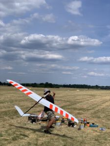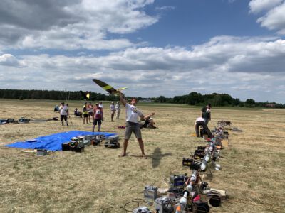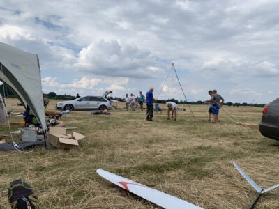 The weather didn’t look good on Saturday morning. A lot of clouds and the radar already showed rain coming toward us. With the strong western winds, it did not take long until it began. Even before we were able to do the briefing. Half an hour later it looked better and we began with duration. After the rain and without sun there was little hope for any rising air masses. Especially with the strong and turbulent wind. The Ground was in the wind shadow of the tree line but once the model was above, the winches had to work a lot and the resulting launch altitudes at least were good.