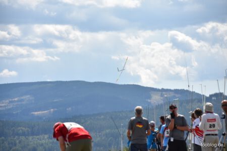 Zum Abend wurde dann auch noch der Speed von Runde 3 geflogen. Soeren Krogh gelang hier ein schöner Flug in guter Luft und er konnte sich über den 1000er freuen. Im etwas aufgelebten Wind ging Frank Thomas allerdings aufgrund des nach dem Rausfaller im zweiten Start erneut gerissenen Seils dann leider nach dem vierten Start die Rahmenzeit aus.