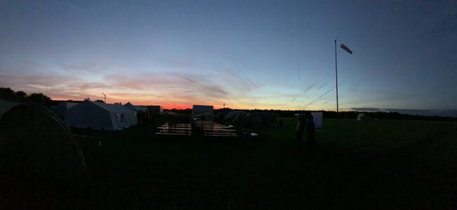 Kurz vor Sonnenuntergang konnte der Tag dann trotz des späten Beginns dank effizienter Führung durch Wettbewerbsleiter Peter Hubbertz und einer eingespielten Helfer-Crew mit sechs geflogenen Aufgaben beendet werden. Die Versorgung mit leckeren Muffins und Kuchen sowie Brat- und Currywurst am Platz war allerdings schon so hervorragend gewesen, dass eine weitere Steigerung des kulinarischen Genusses schon eines etwas längeren Spaziergangs in die Stadt bedurfte 😉